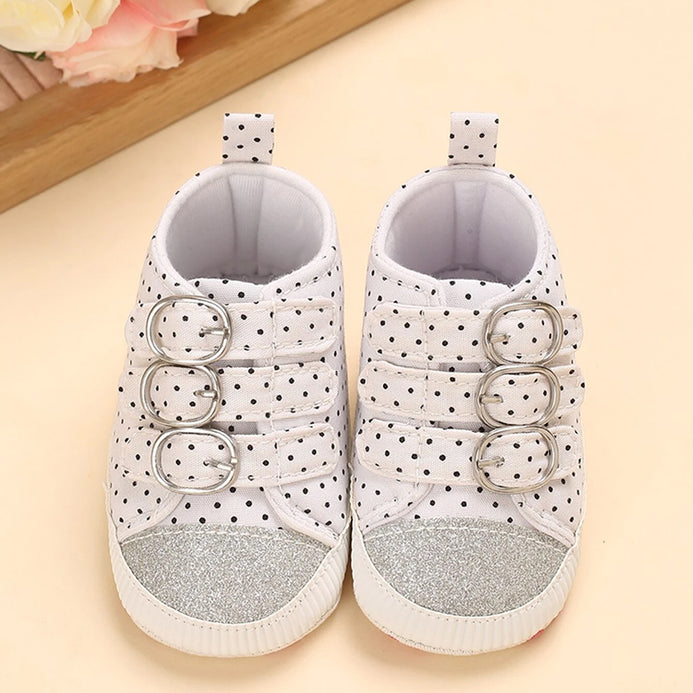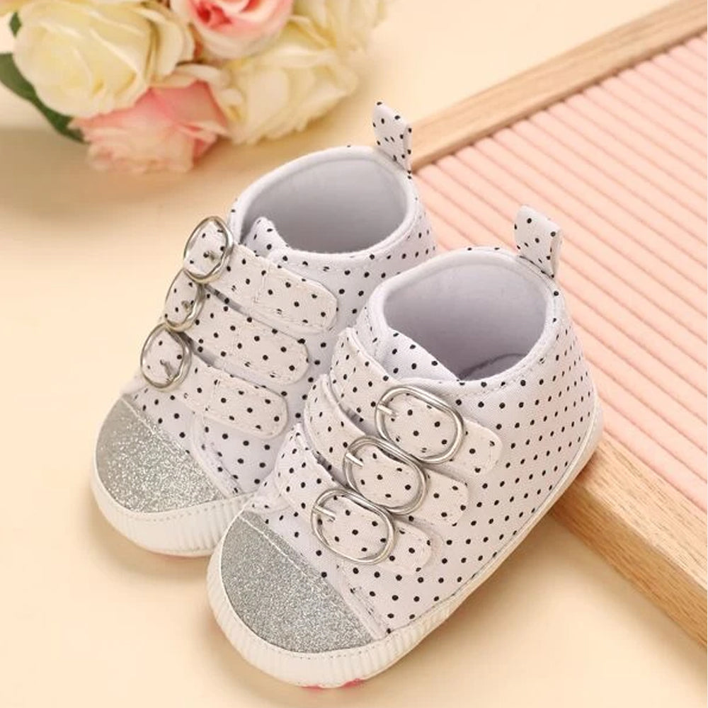 VLSN Glitter Front Buckle Style Polka Dots White Shoes 12139