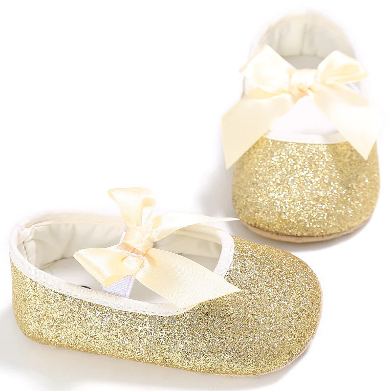 VLSN Glitter With Bow Style Golden Pumps 12110