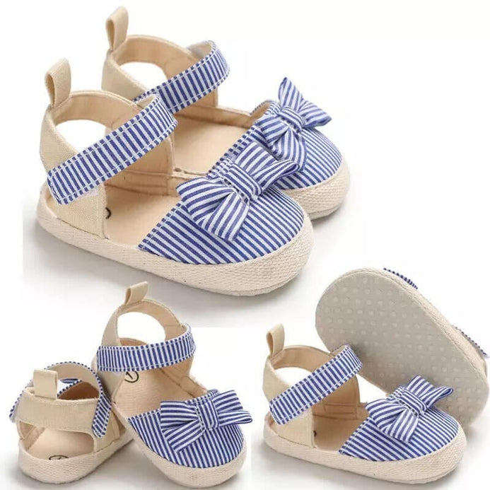 VLSN white Blue Stripes Bow Style Prewalkers 13943