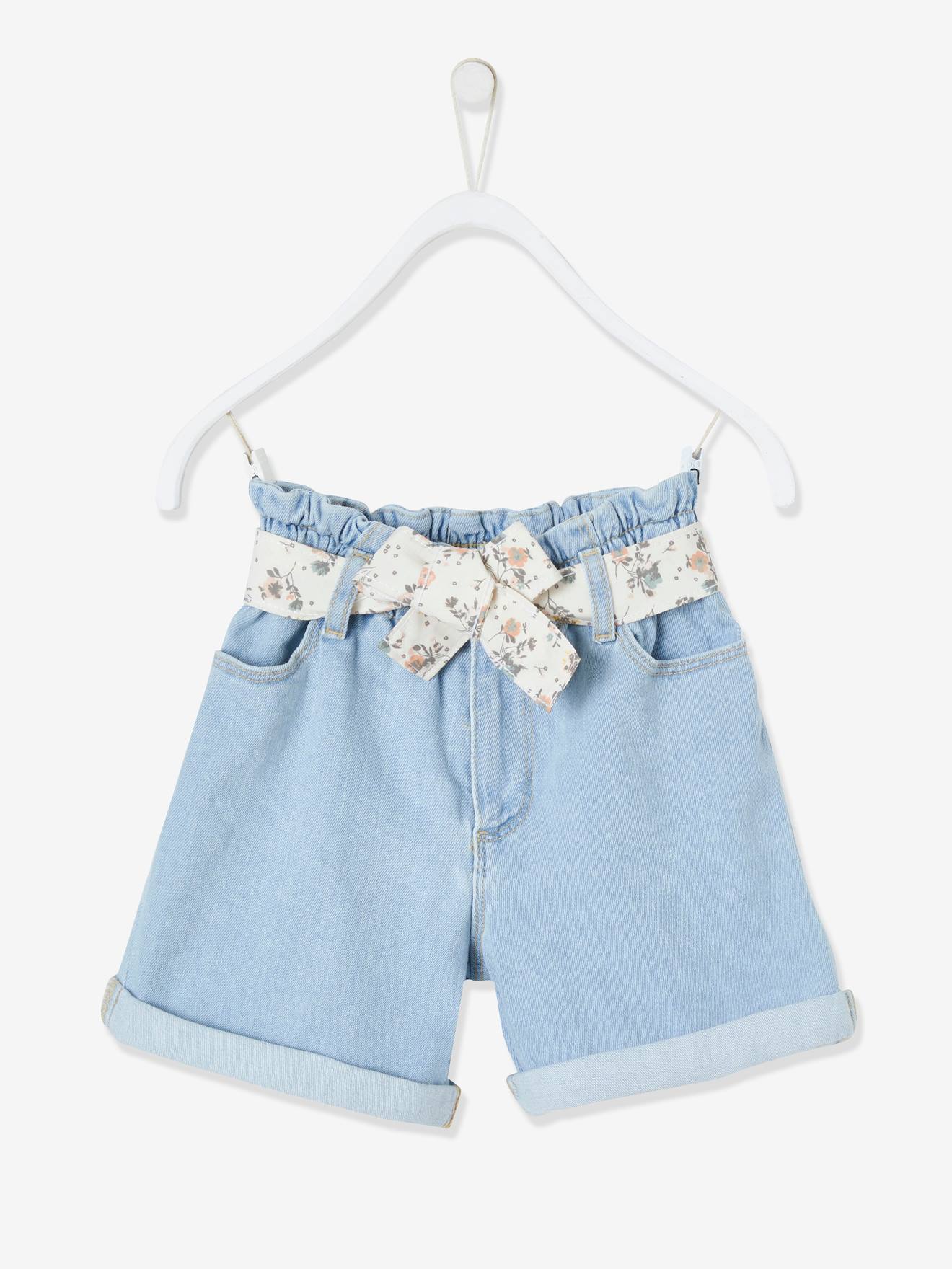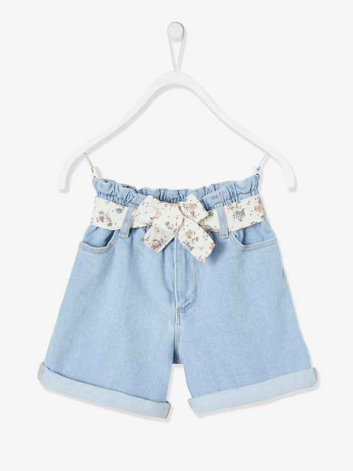 VRB Floral Belt Light Blue Denim Girls Shorts 9500