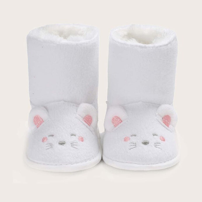 VSLN Mouse Face Inner Fur White PreWalker Long Booties 12129