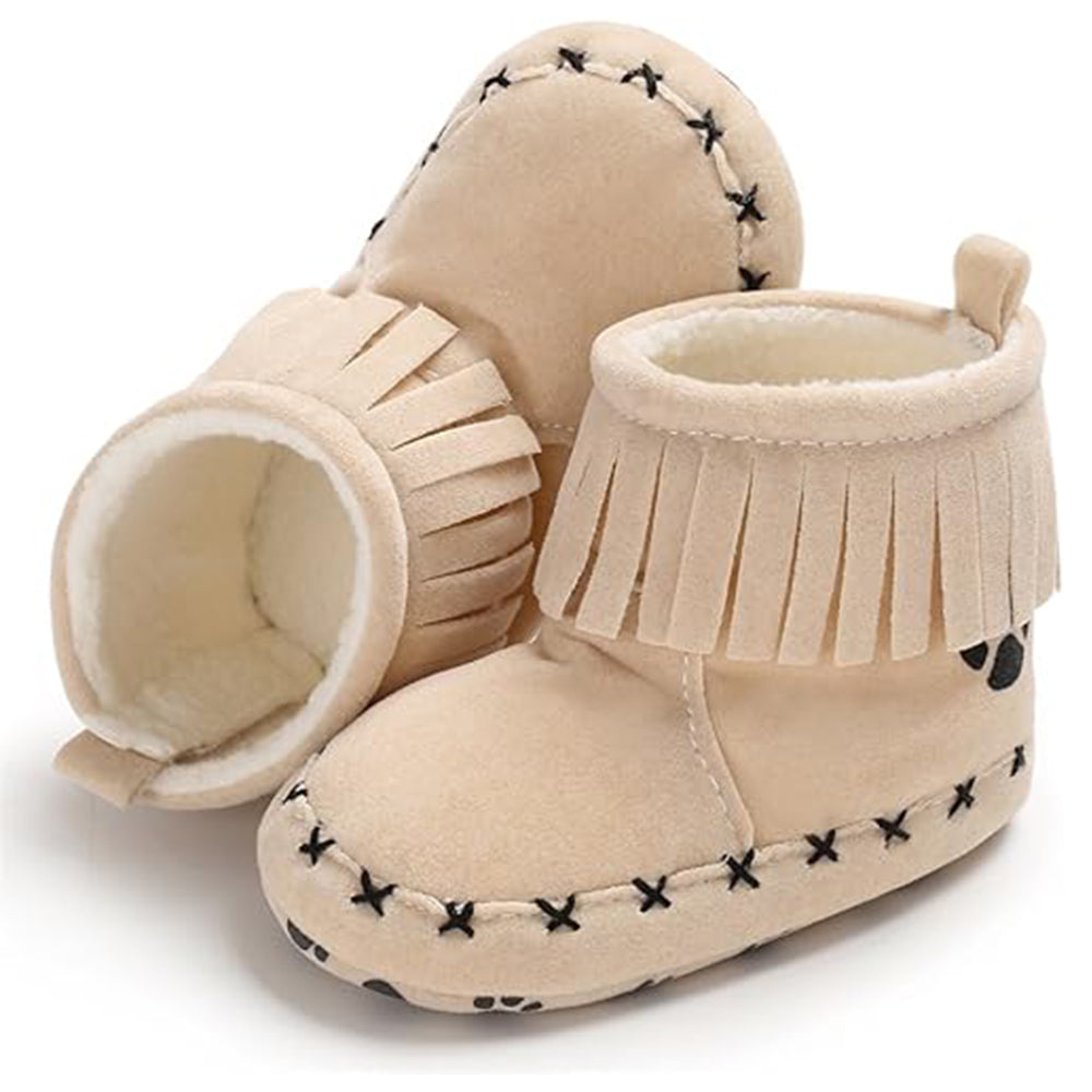 VLSN Paw Print Cut Style Beige Velvet Long Shoes 12141