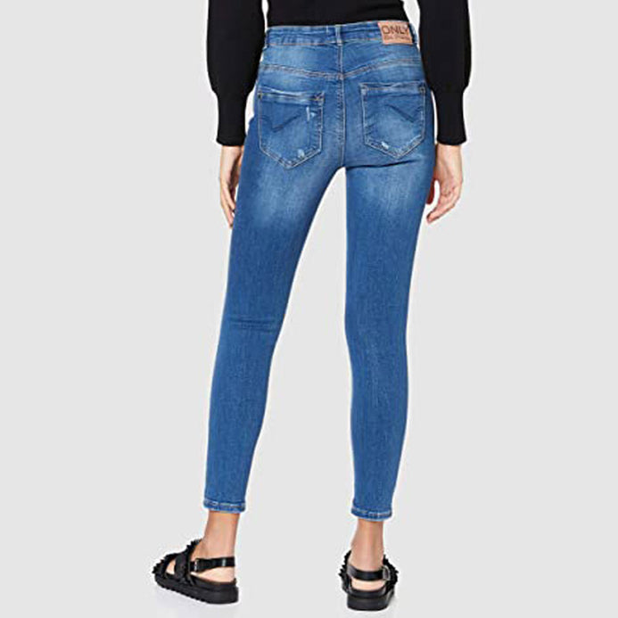 - OLY Paola Diamond Button Mid Blue Ribbed Skinny Fit Denim 3412