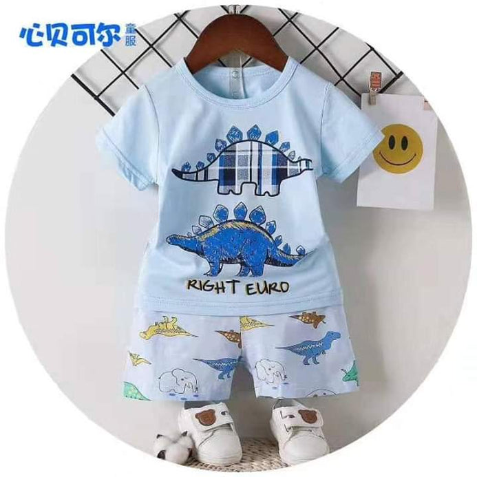 - 2 Pieces Set Check Dinosaur Blue 1801