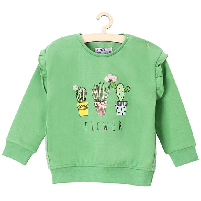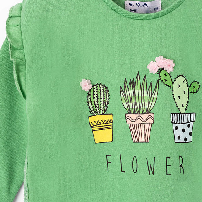 5.10.15 Cactus Flowers Shoulder Frill Green Sweatshirt 879
