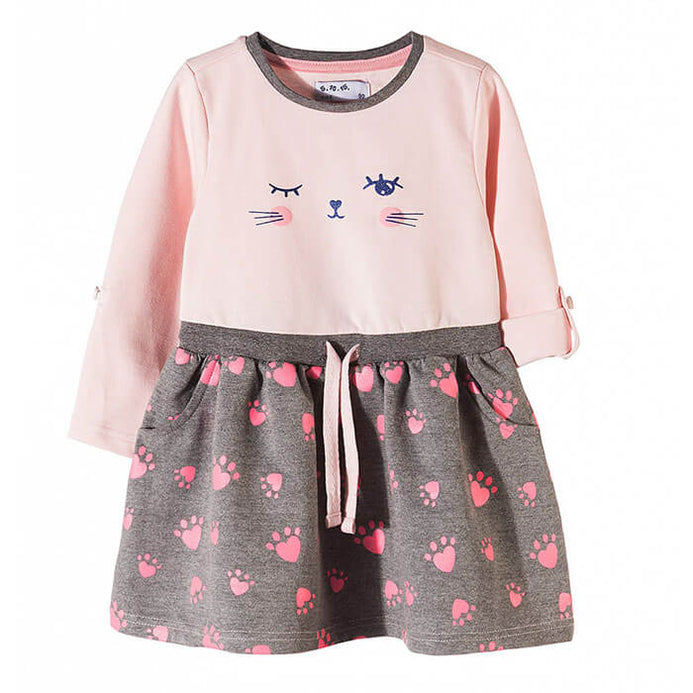 5.10.15 Cute Kitty Paw Print Pink Dress 809