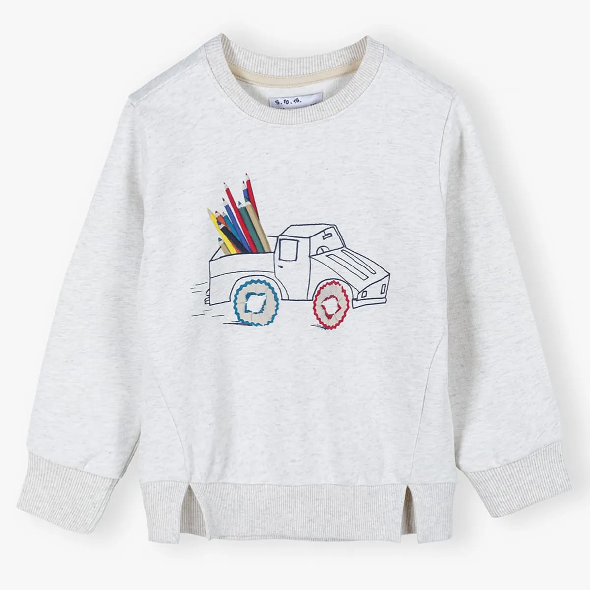 - 5.10.15 Hilux Car & Color Pencil Print Cut Style Textured White Terry Sweatshirt 13757