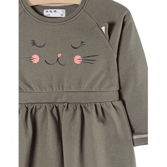 5.10.15 Long Sleeves Cat Face Green Dress 815