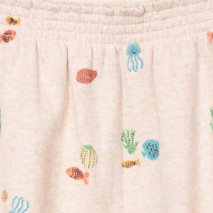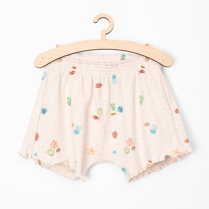 5.10.15 Sea Life Print Sand Beige Rib Girls Shorts 11316