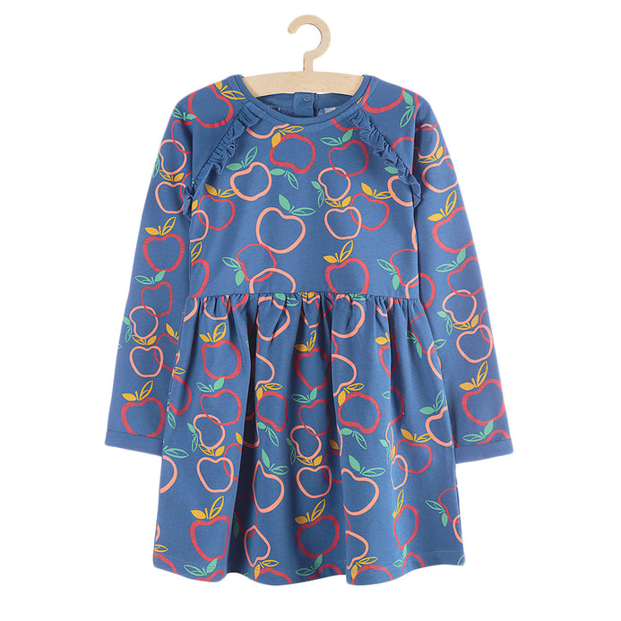 - 51015 Apple Print Frill Shoulder Blue Dress 8346