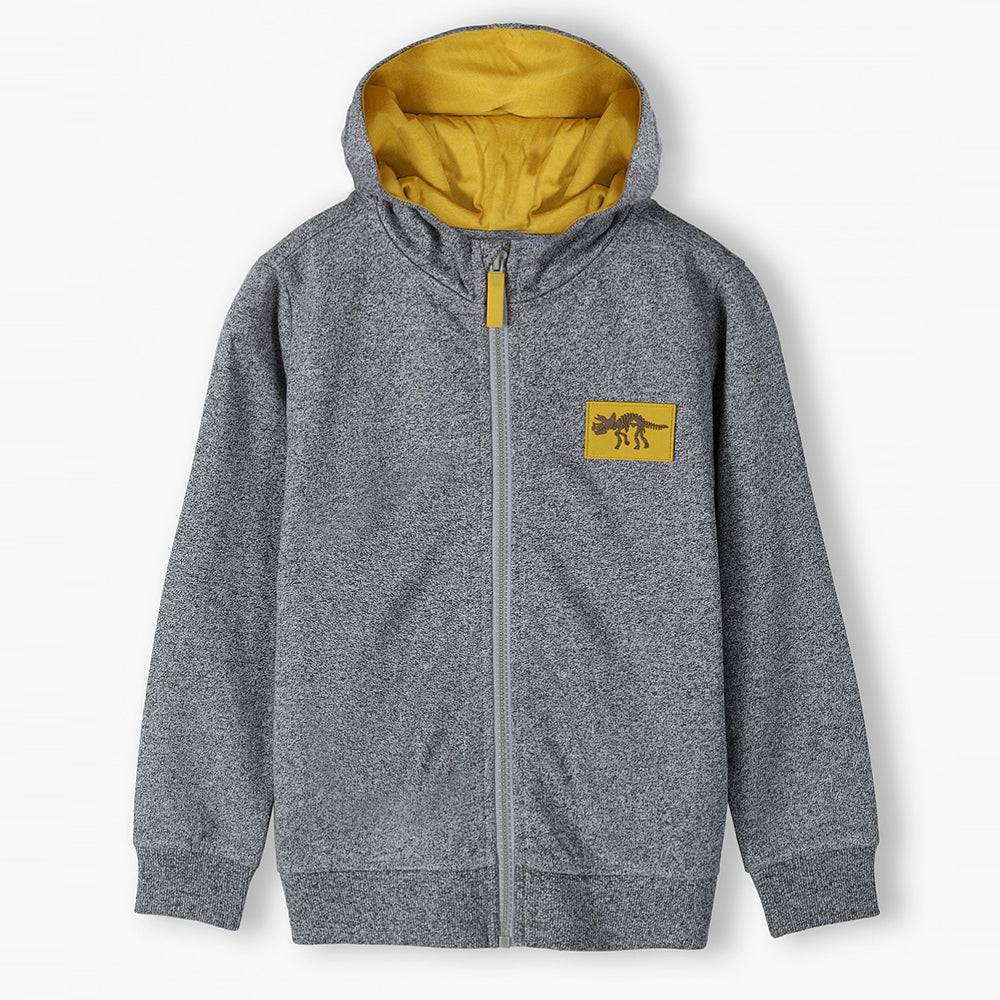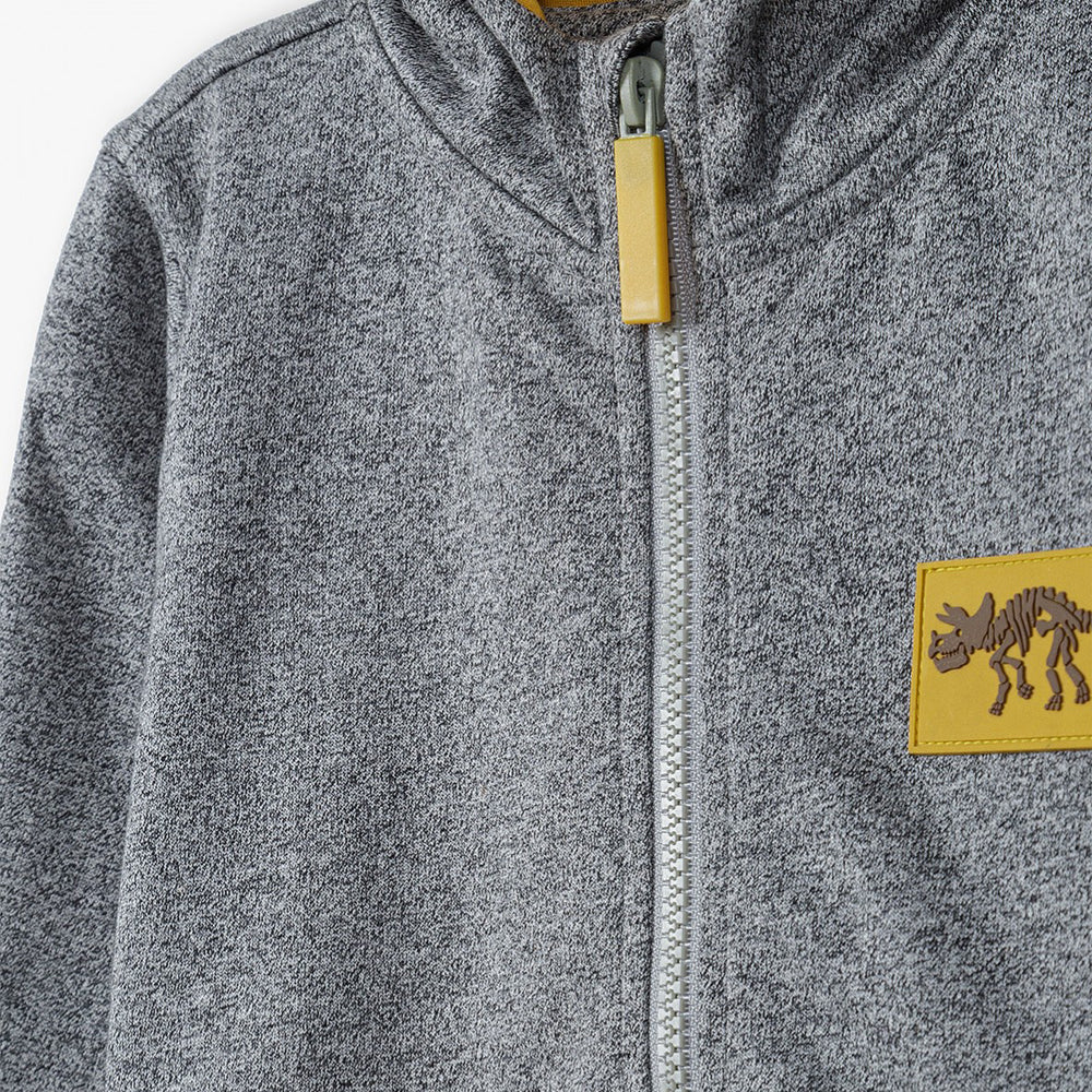 51015 Dino Badge Melange Grey Fleece Zipper Hoodie 8427