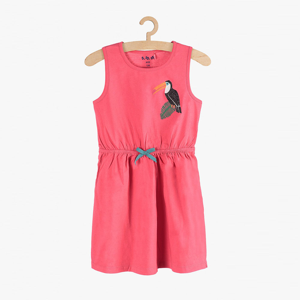 51015 Glittered Parrot Shocking Pink Sleeveless Frock 3486