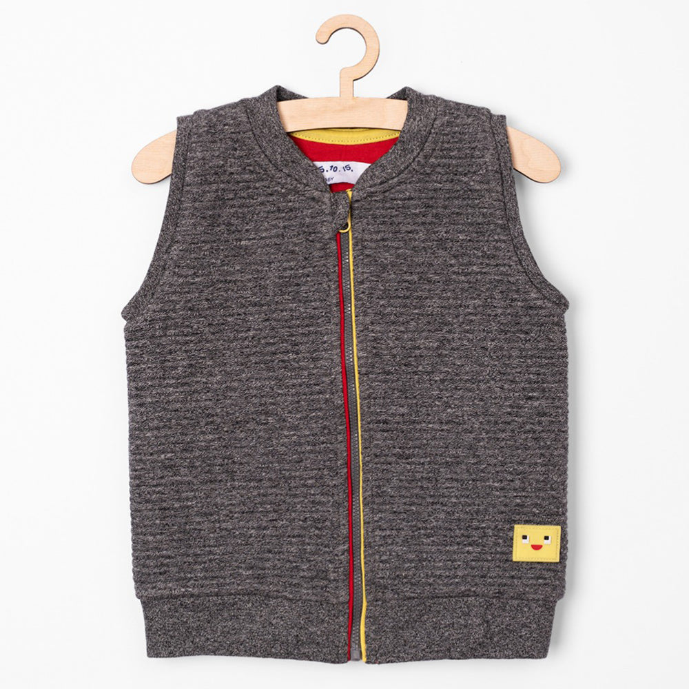 51015 Smile Badge Quilted Sleeveless Dark Grey Zipper 8431
