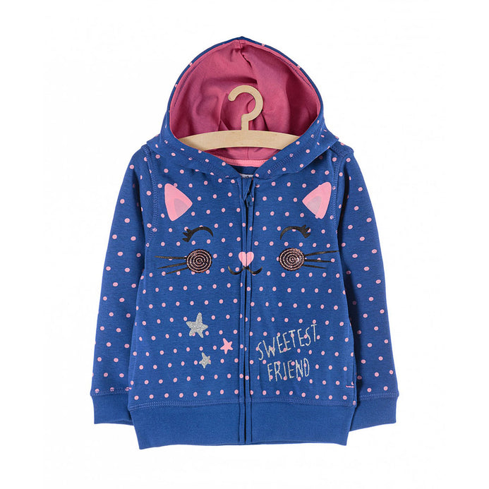 - 51015 Sweetest Friend Cat Face Polka Dots Blue Zipper Hoodie 2787