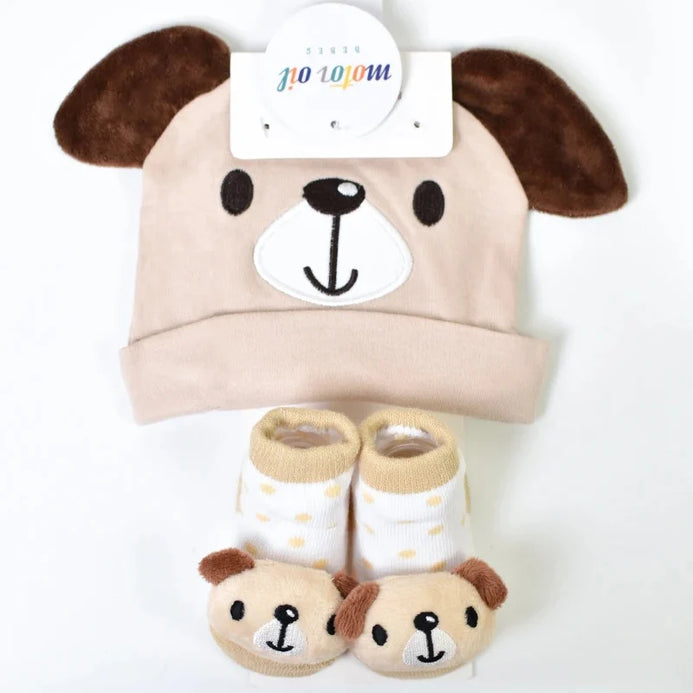 - AFR Puppy style Socks with Cap Brown 2 Piece Infant Gift Set 13184