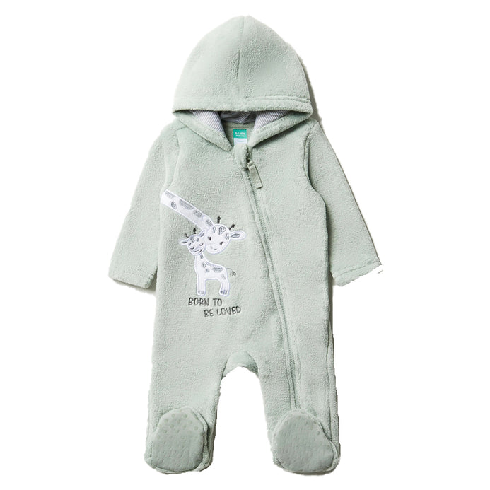 AKMS Applic Giraffe Warm Fluffy Furr Fleece Pale Green Romper 13333