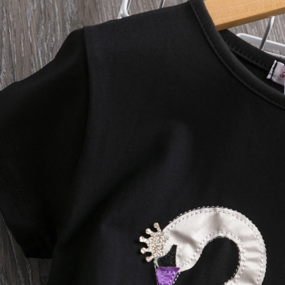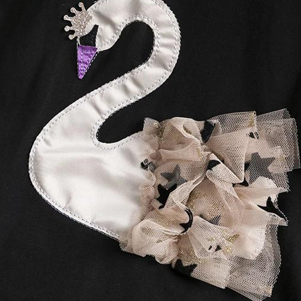 Anch Lal Silver Swan Aplic Black Skirt Set 2606