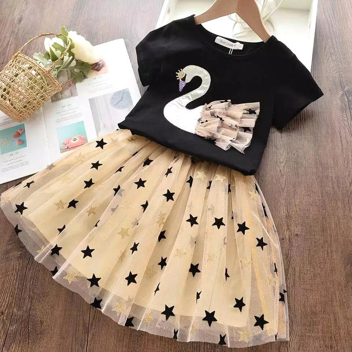 - Anch Lal Silver Swan Aplic Black Skirt Set 2606