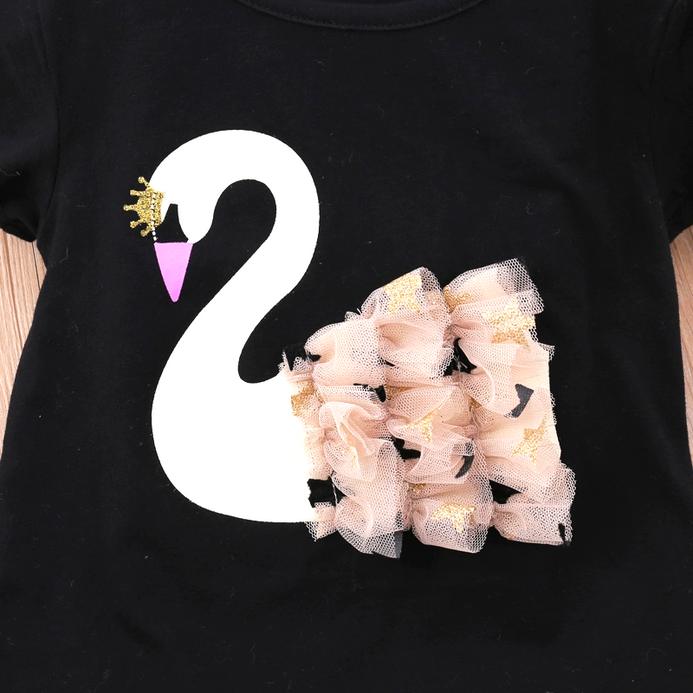 Anch Lal Silver Swan Aplic Black Skirt Set 2606