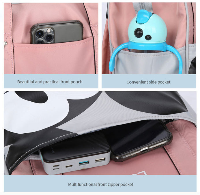 Lining Material: Polyester Shoulder strap style: double root Closing method: zipper Style: mother and baby bag Structure: front zipper bag (3 heat preservation patch pockets can hold baby bottles), main bag (4 inner patch pockets), side pockets (can hold water bottles, umbrellas, etc.) Function: backpack, handbag |