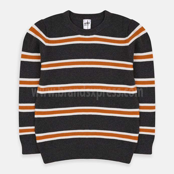 - ANK Mustard And White Stripe Dark Grey Sweater 7769