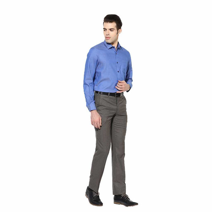 - ARO Blue Solid Slim Fit Formal Shirt