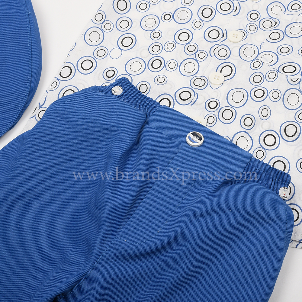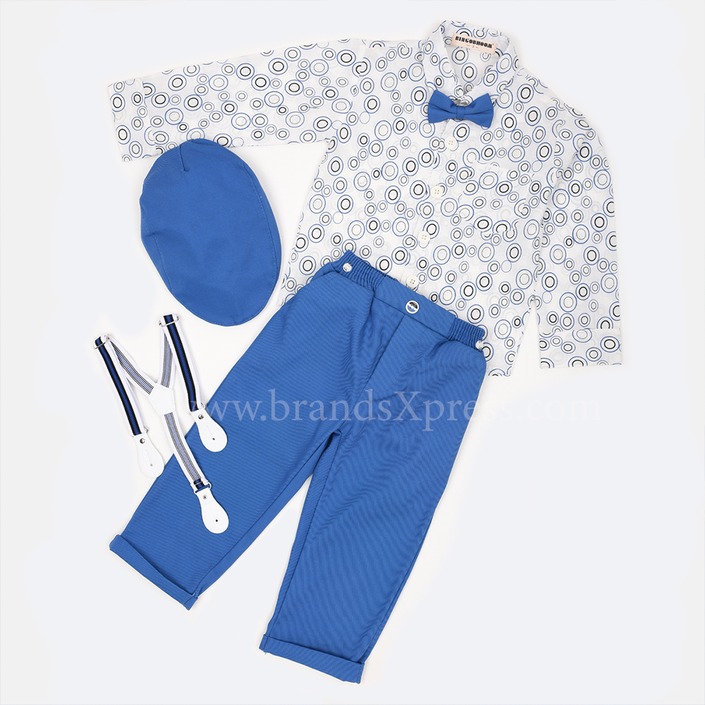 B.B Circles Shirt Blue Pant 5 Piece Set With Bow , Gallace & Cap 10459