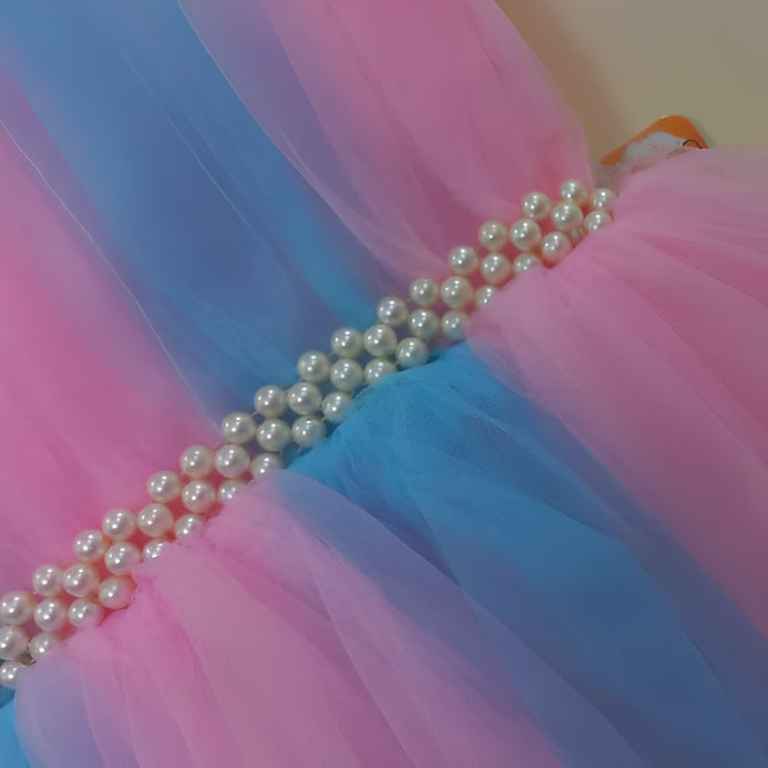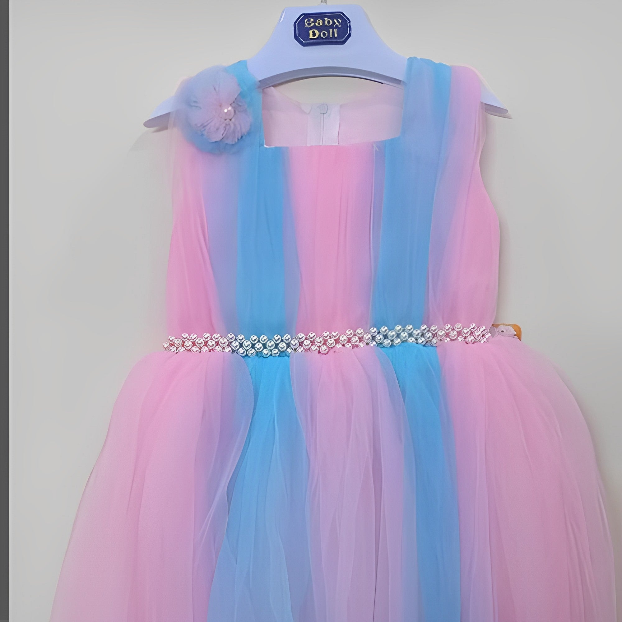 B.B Pearls Belt Pink With Blue Fancy Frock With Inner & Trouser 11615