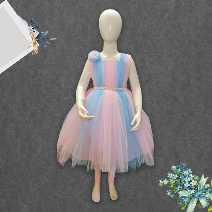 - B.B Pearls Belt Pink With Blue Fancy Frock With Inner & Trouser 11615