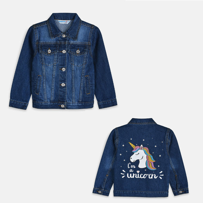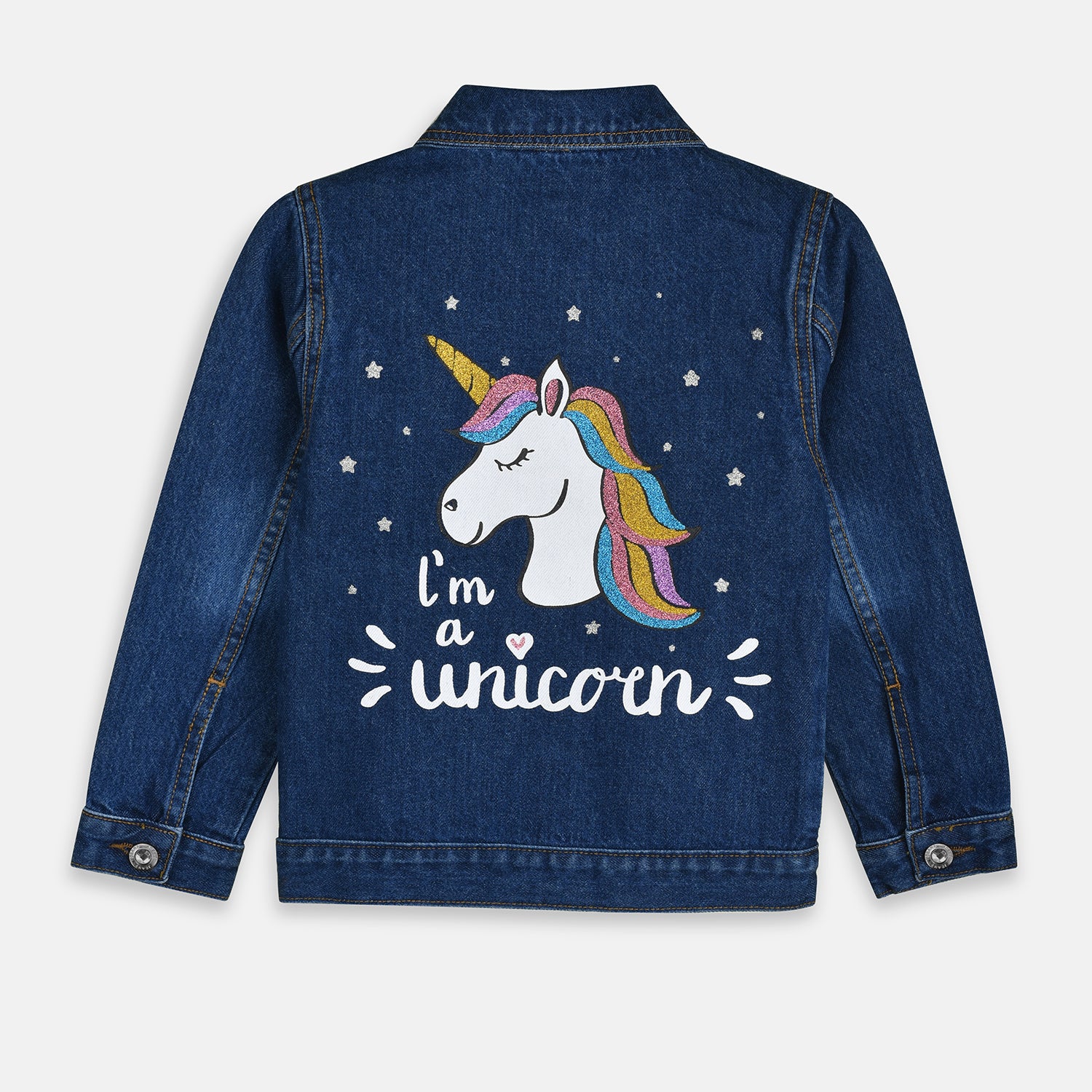 B.X Glitter Back Unicorn Print Dark Blue Denim Jacket 3409