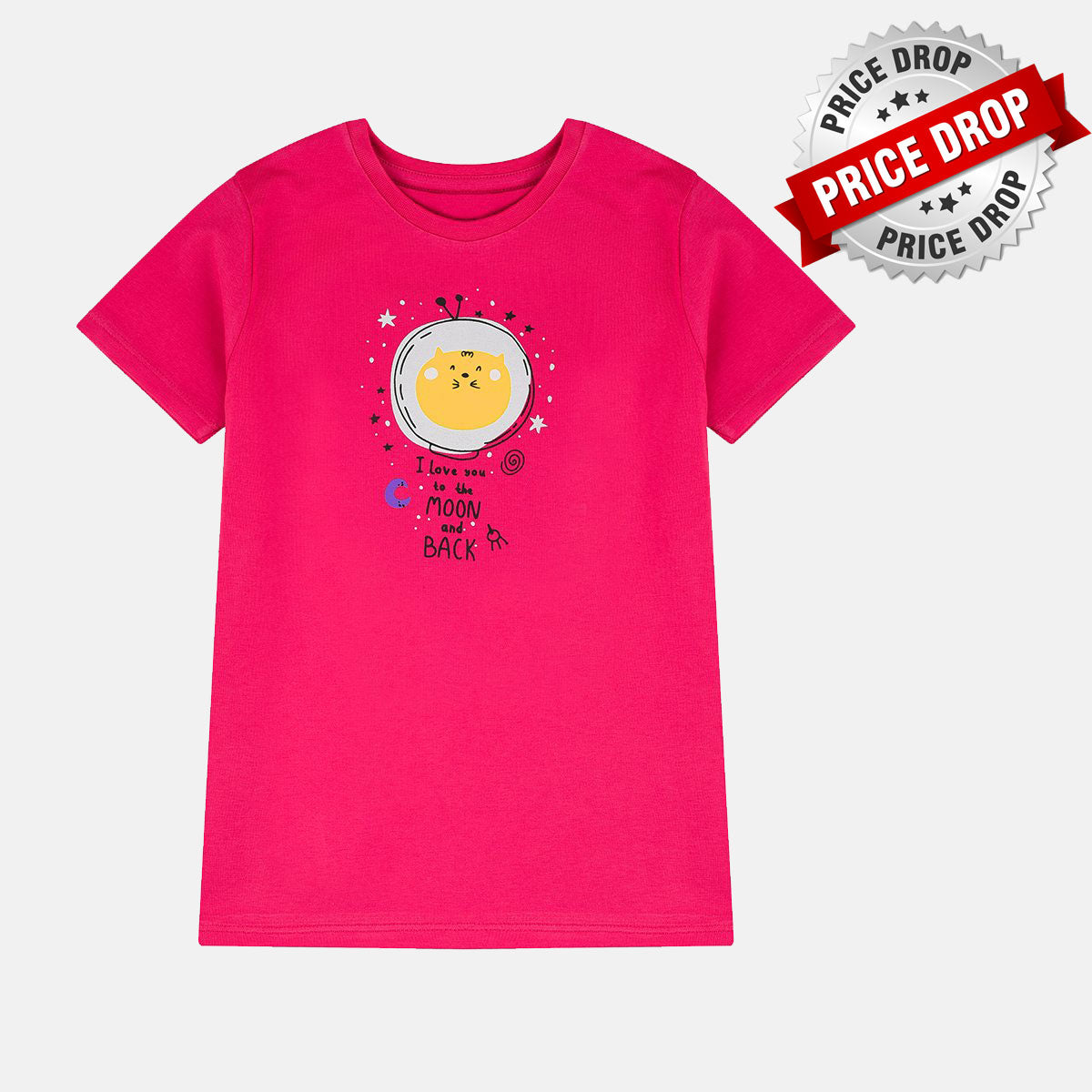B.X Moon & Back Cat Shocking Pink Tshirt 7743