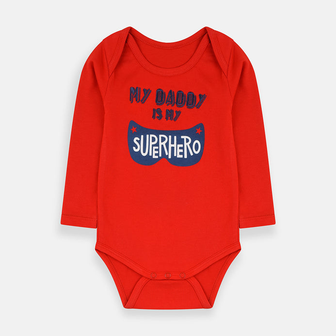 B.X My Daddy Is My Super Hero Embroidered Red Body Suit 4828