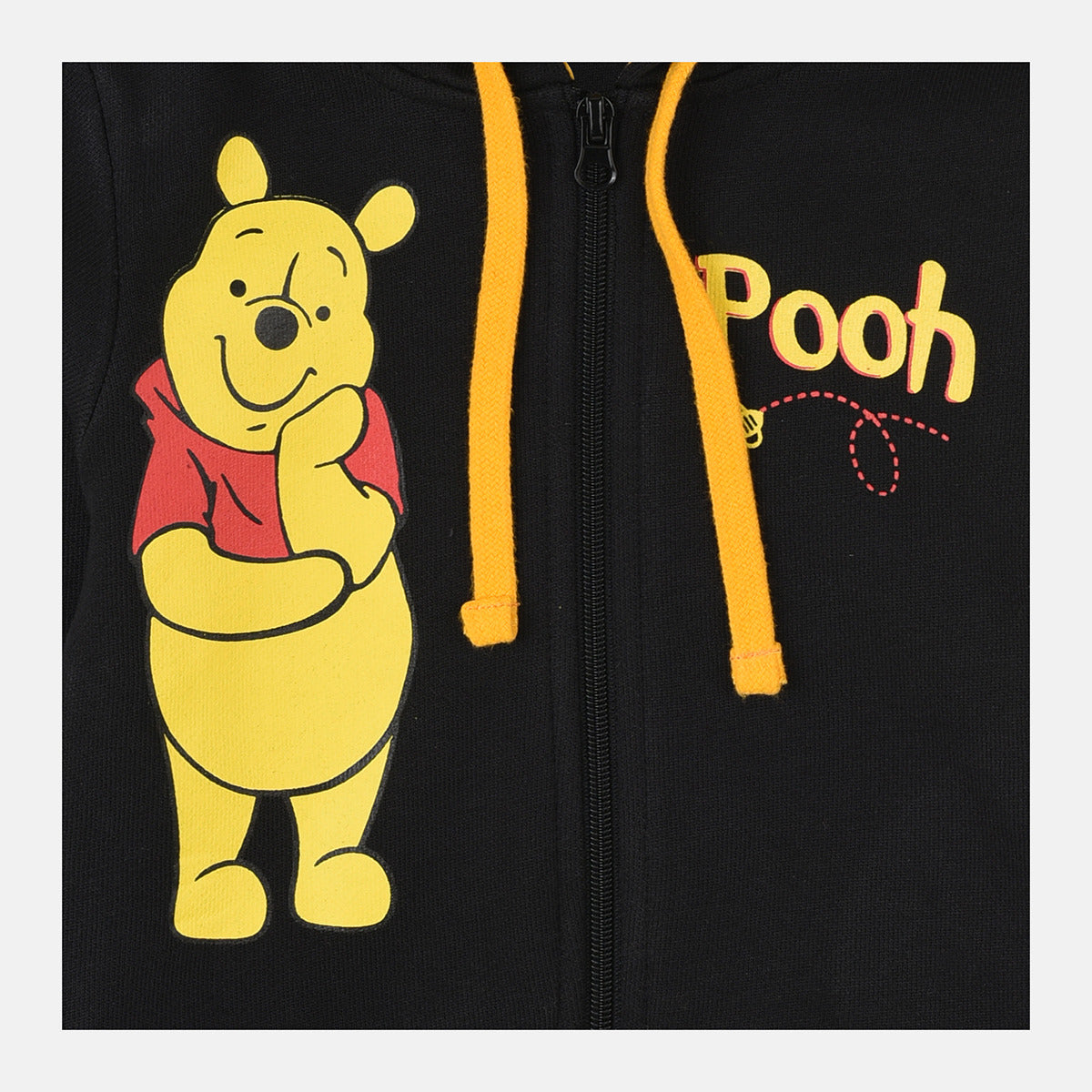 - B.X Pooh Bear Print Yellow Cord Black Zipper Hoodie 8484