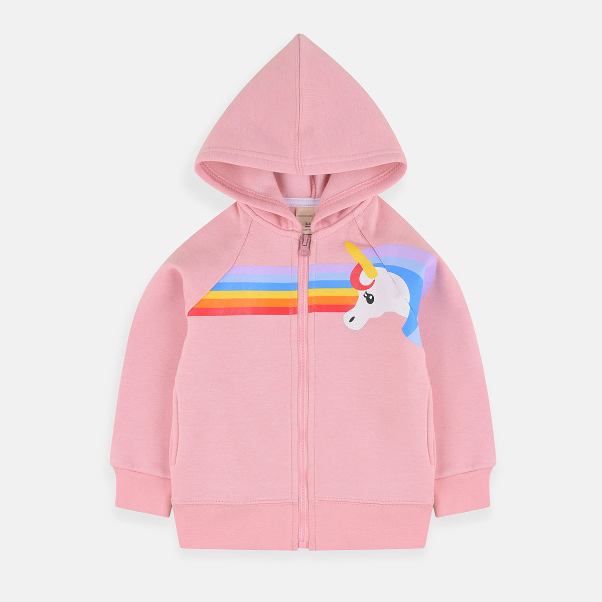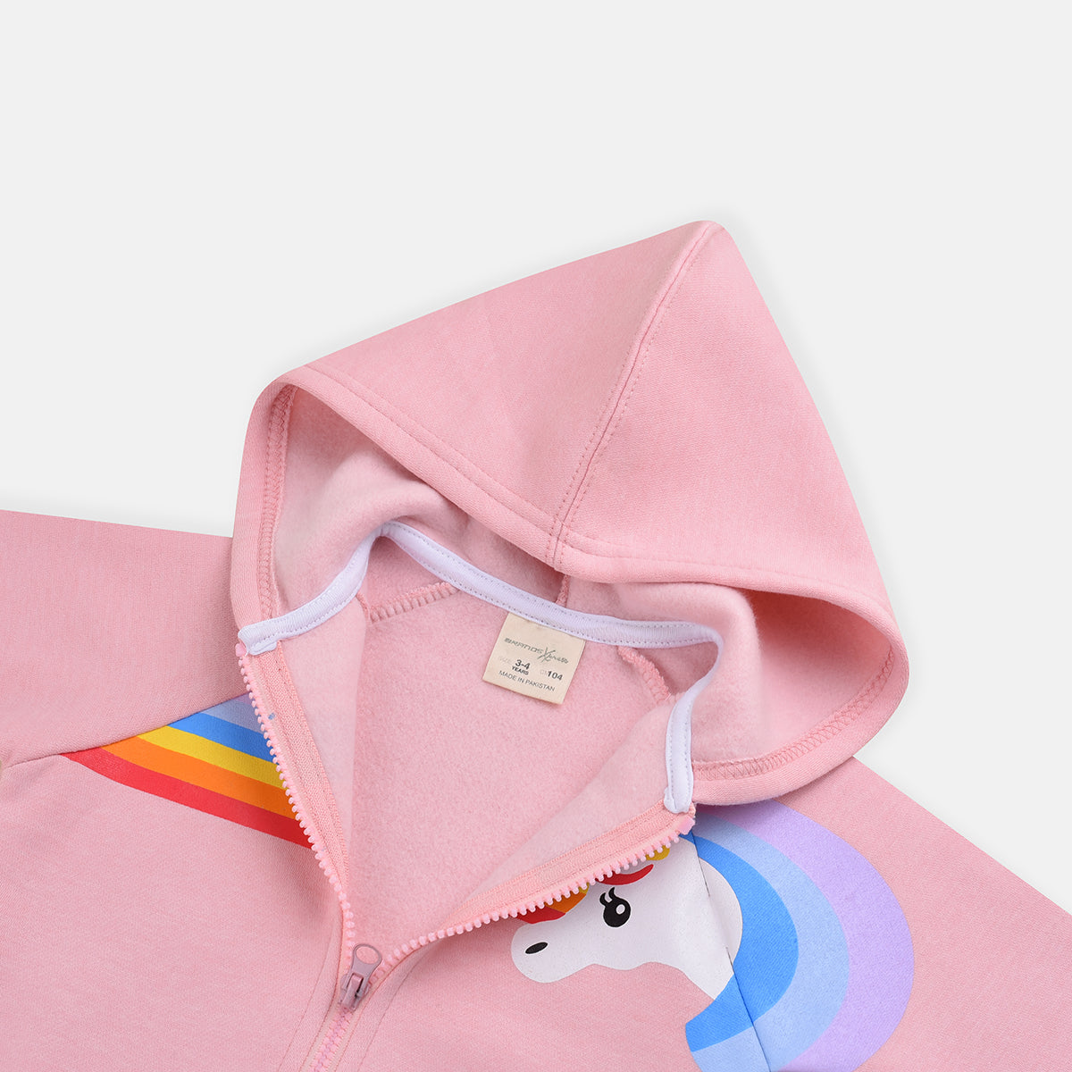 - B.X Rainbow Unicorn Print Pink Zipper Hoodie 3439