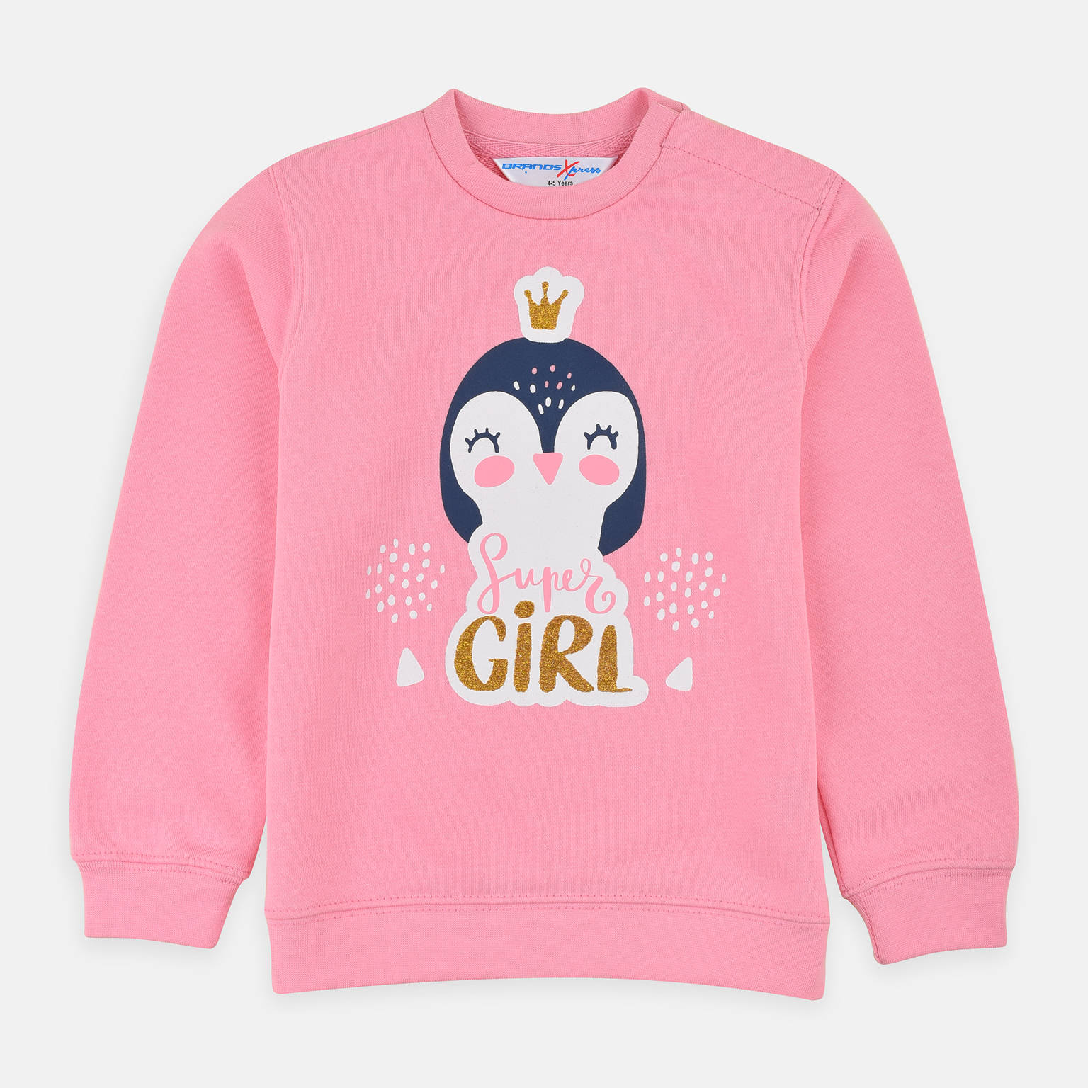 Azeem Arif B.X Super Girl Glitter Penguin Pink Sweatshirt 2908