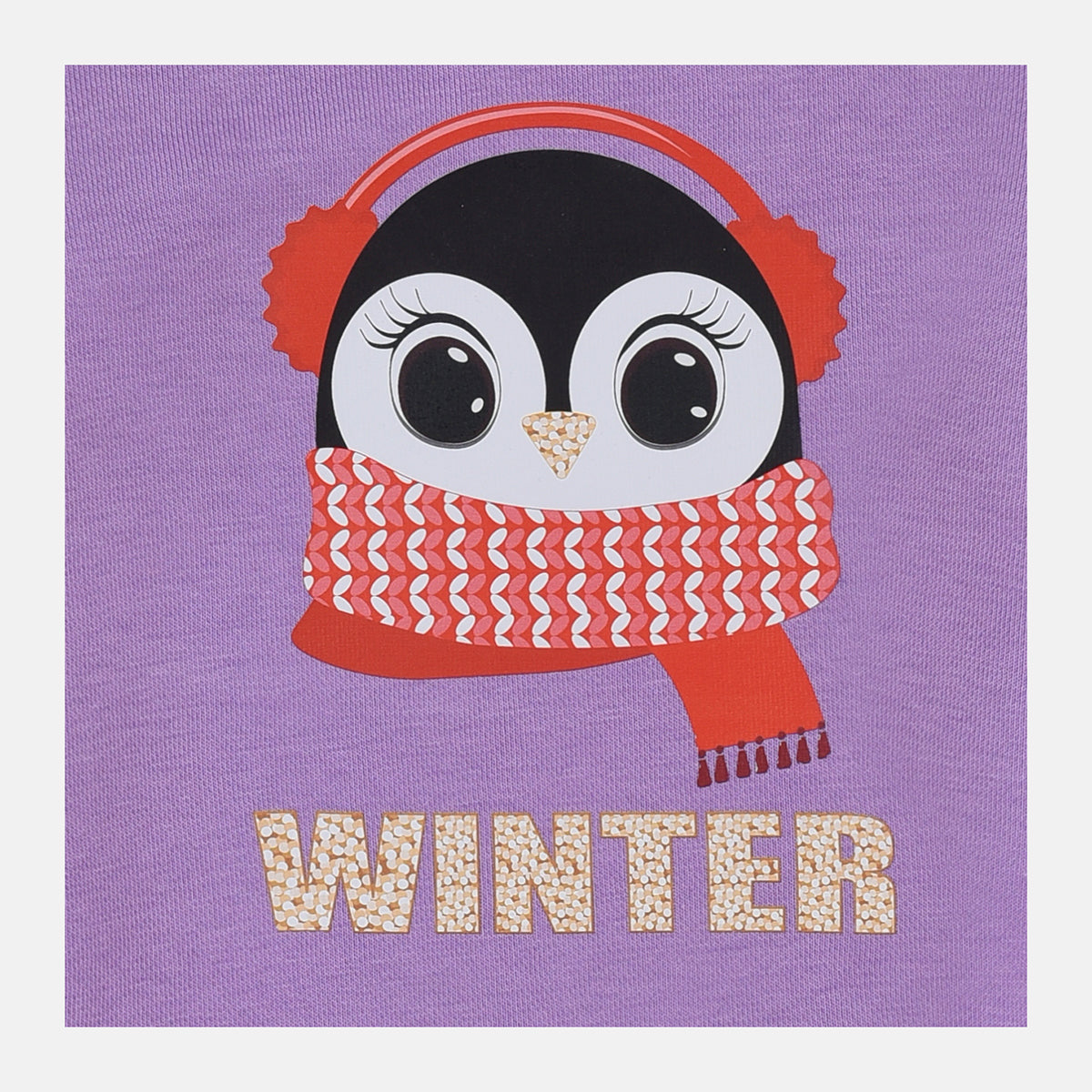 B.X Winter Headphone Penguin Purple Sweatshirt 8493