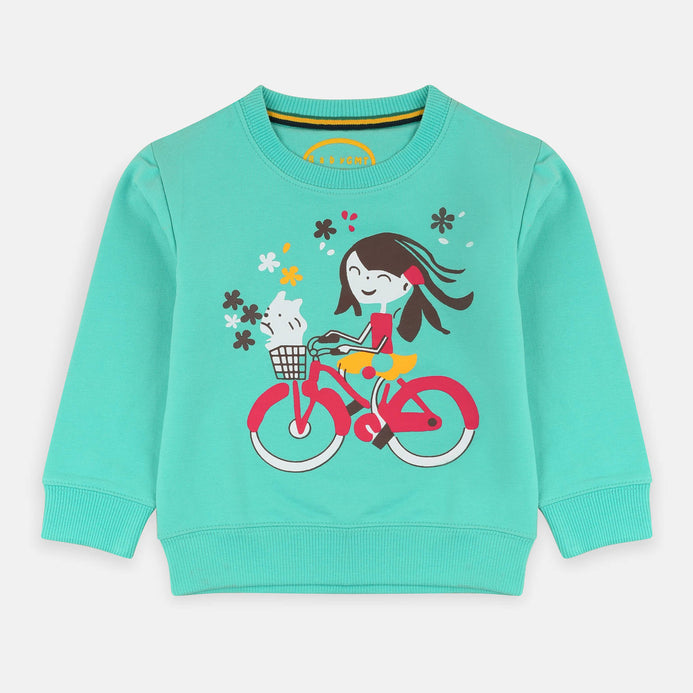 BGM Girl With Cycle Turquoise Sweat Shirt 2430