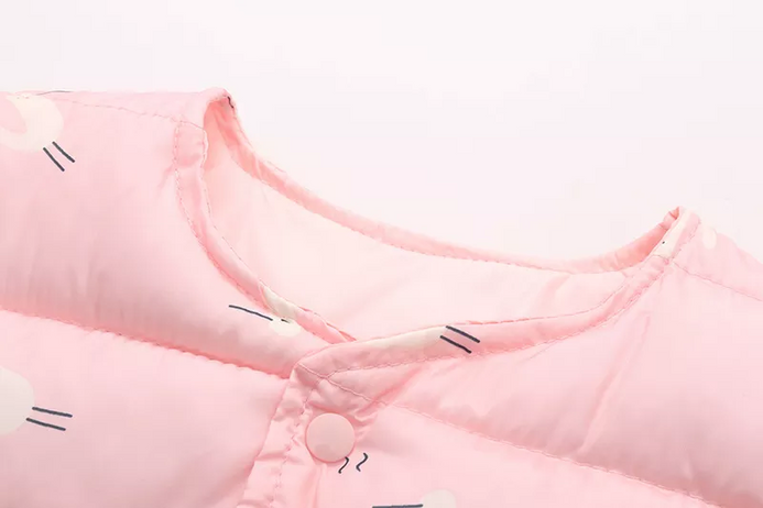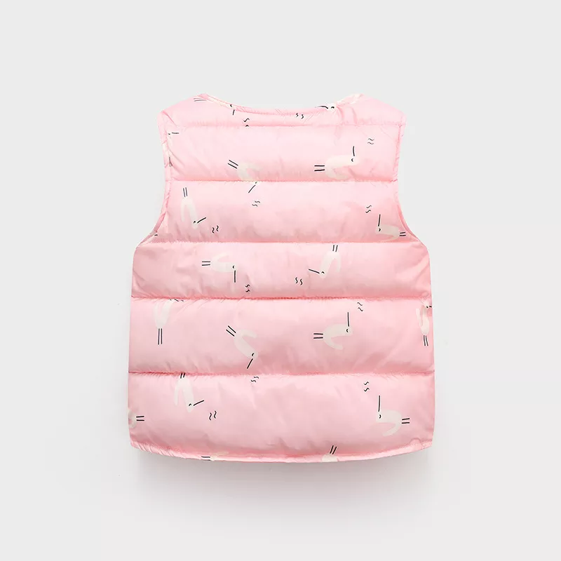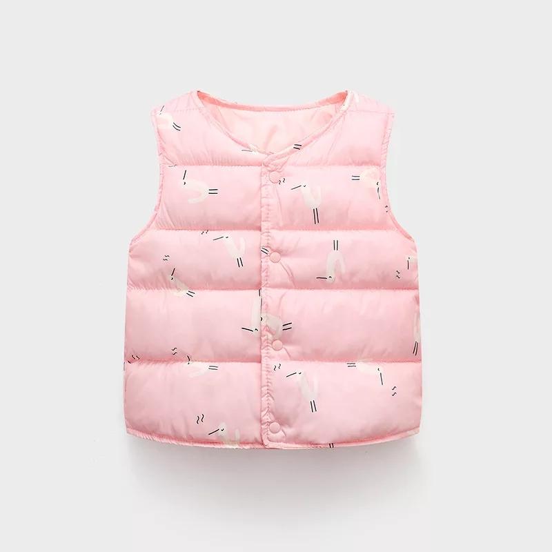 - BYU Bird Print Loose Quilted Sleeveless Pink Jacket 7659