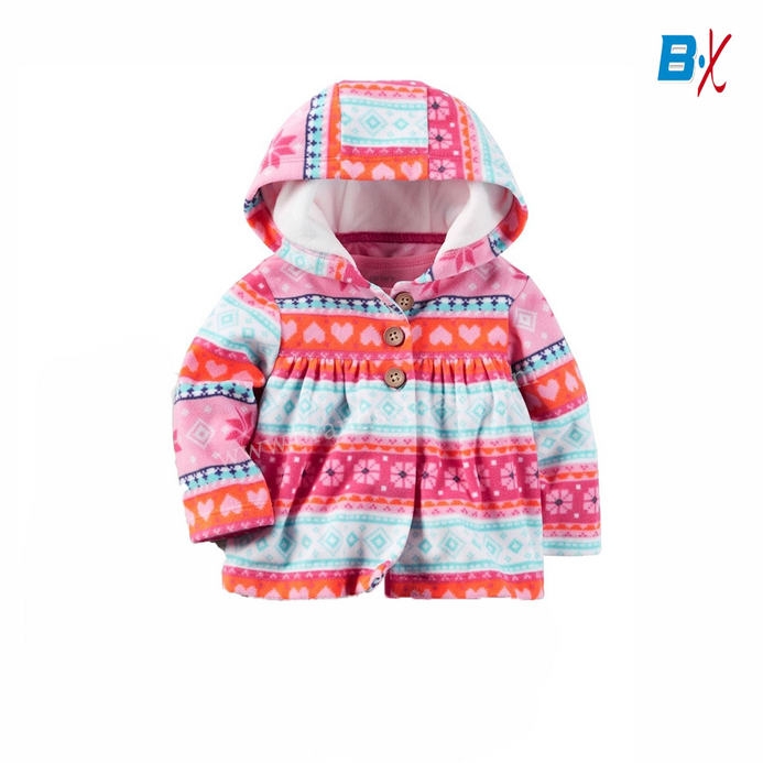 Carters Winter Heart Print Fluffy Fleece Pink Hoodie Frock 10165