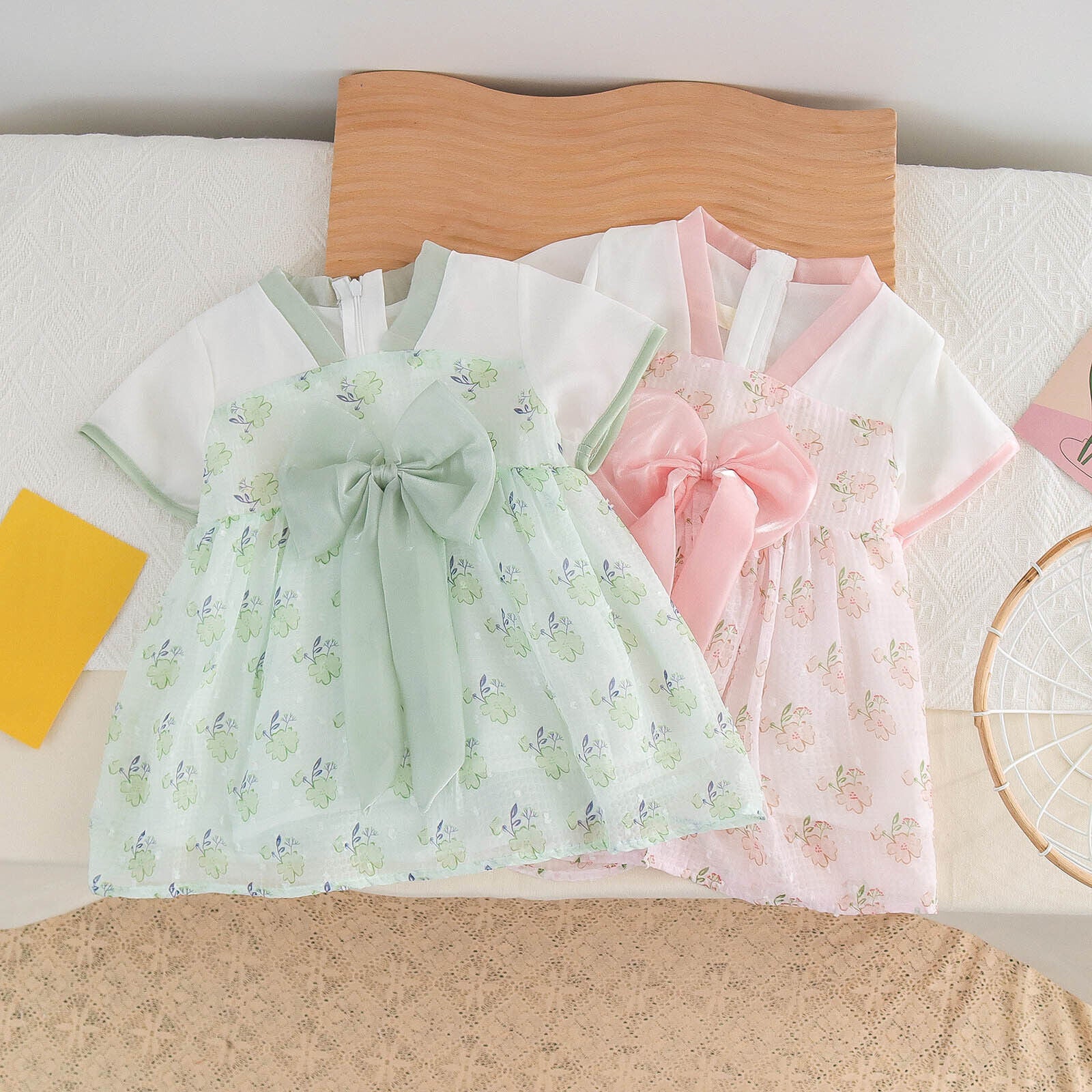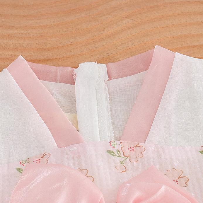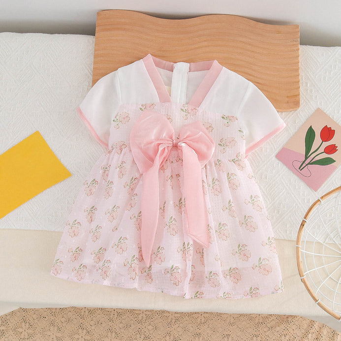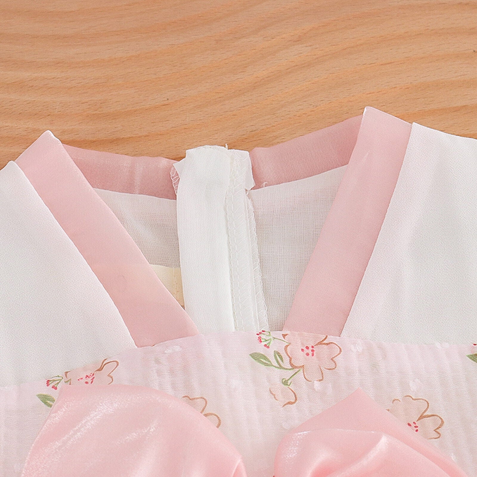 CN All Over Flower Print Bow Style Pink Frock 11077
