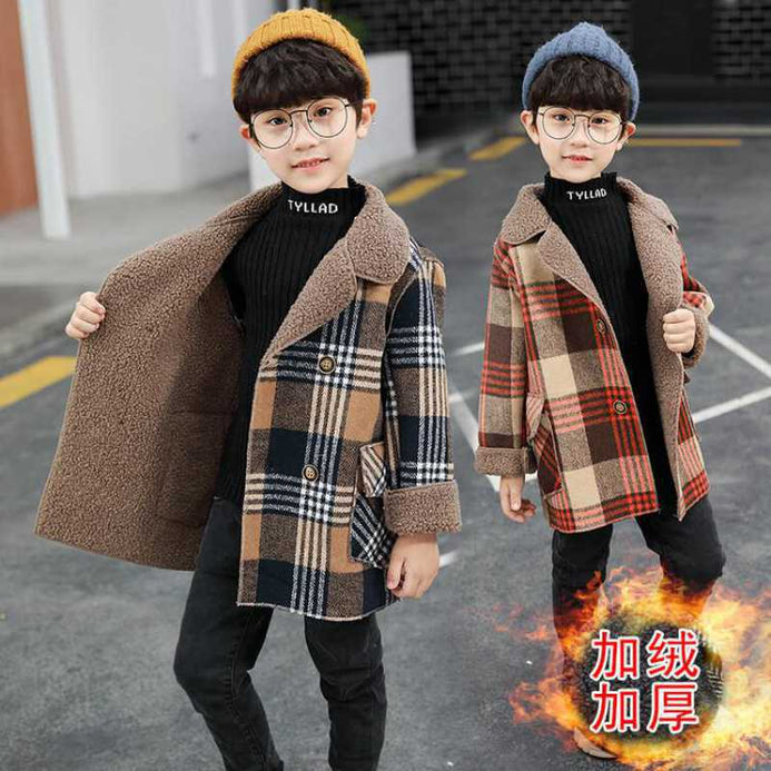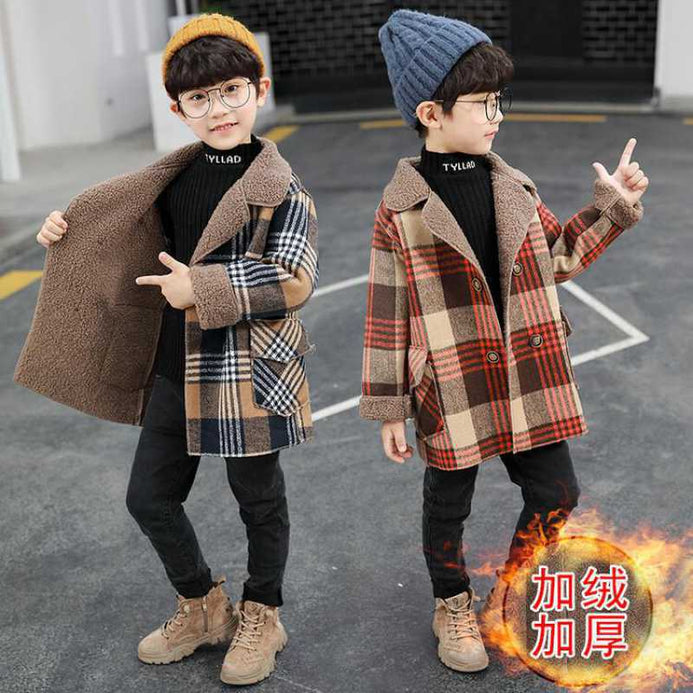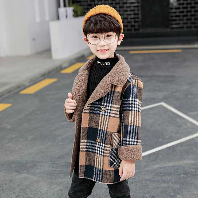 - Cute Kids Blue & Brown Check Wool Inside Warm Coat 10525
