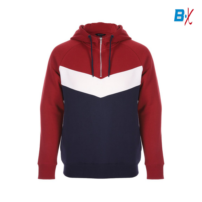 PCK Zip Neck Black Design Fleece Maroon With Blue Hoodie 10069