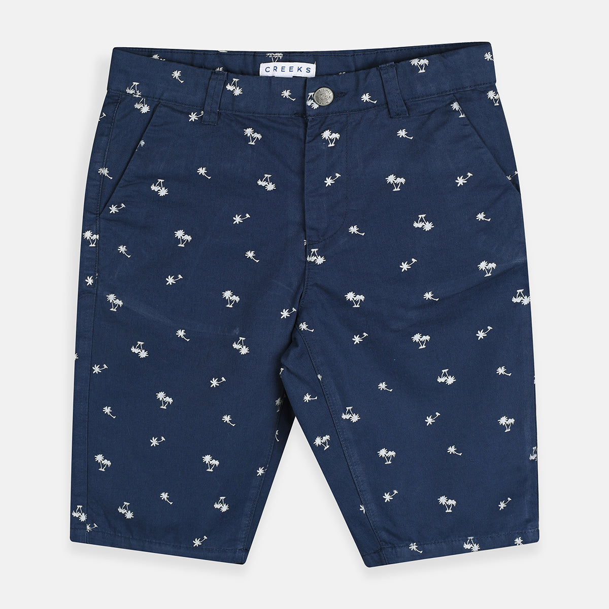 - CRK Palm Trees Print Navy Blue Cotton Shorts 3995