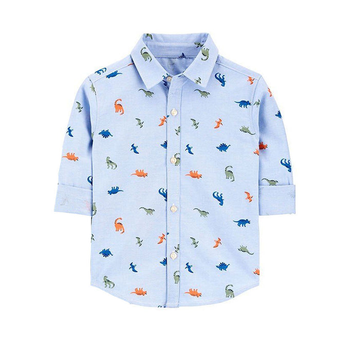 - CRT Dino Print Oxford Cotton Blue Full Sleeves Casual Shirt 3842