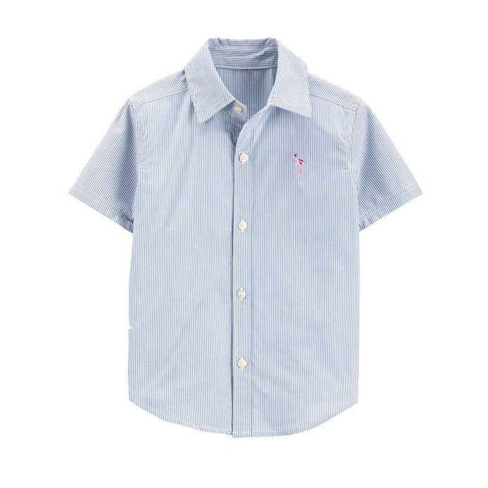 - CRT Flamingo Logo Blue & White Lines Half Sleeves Casual Shirt 3857