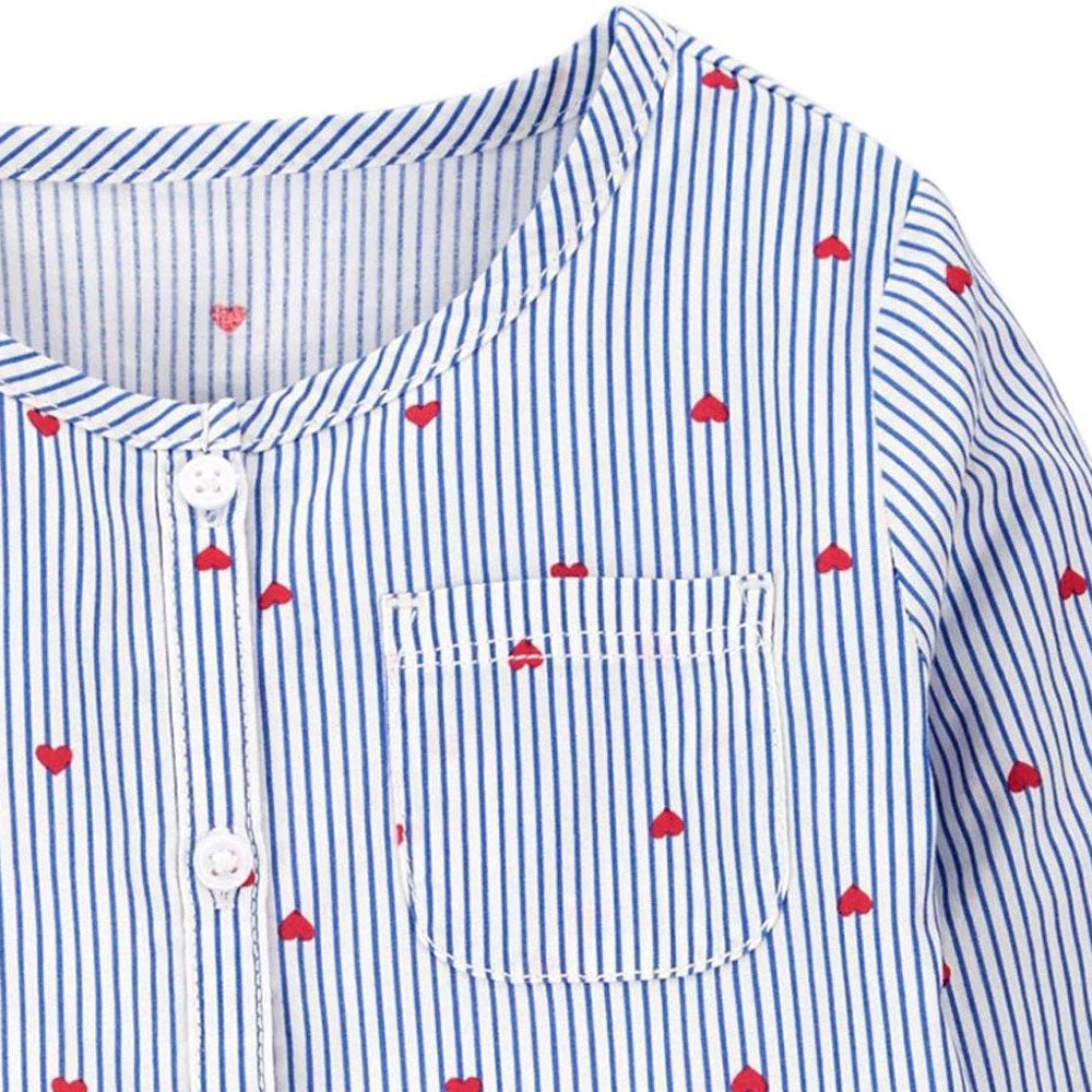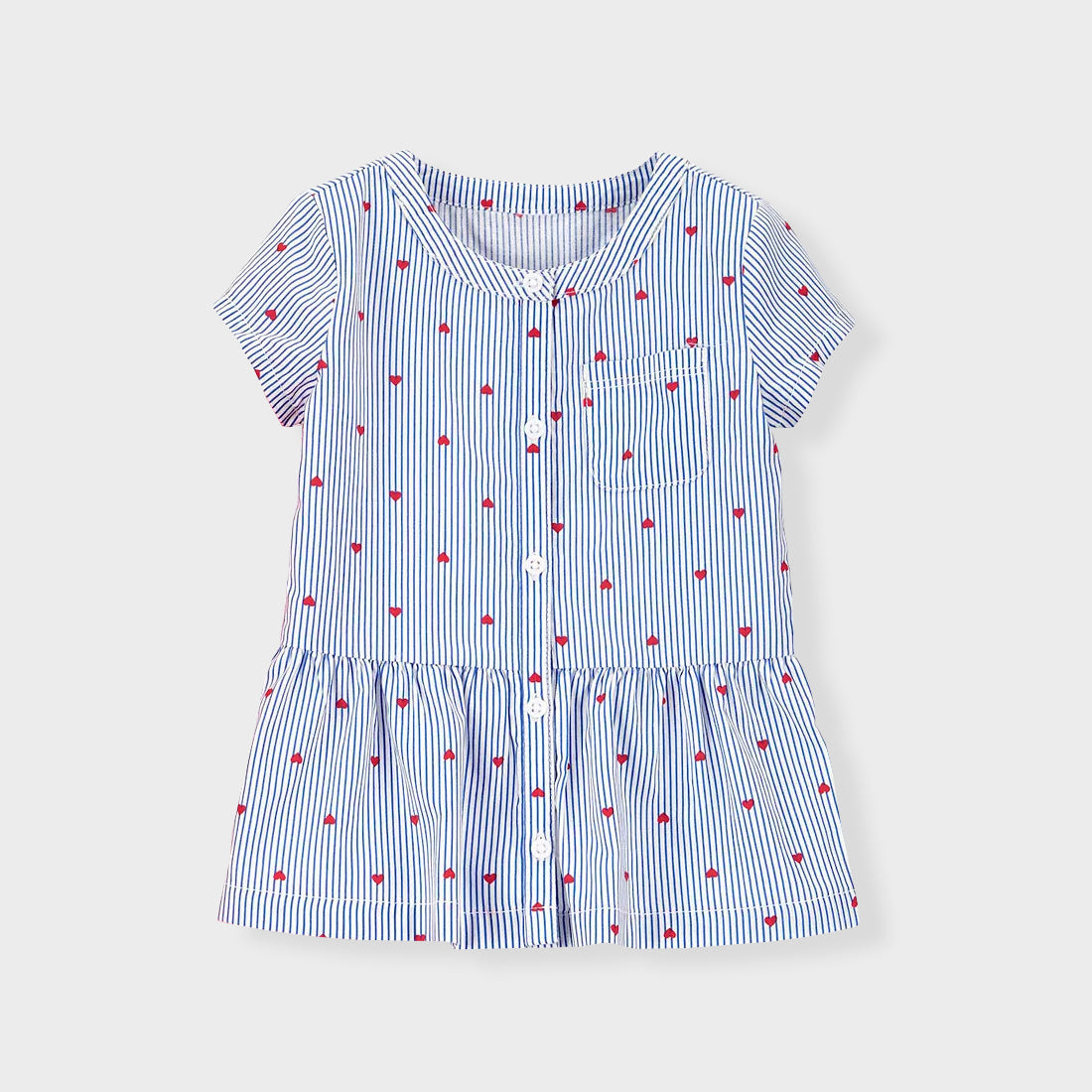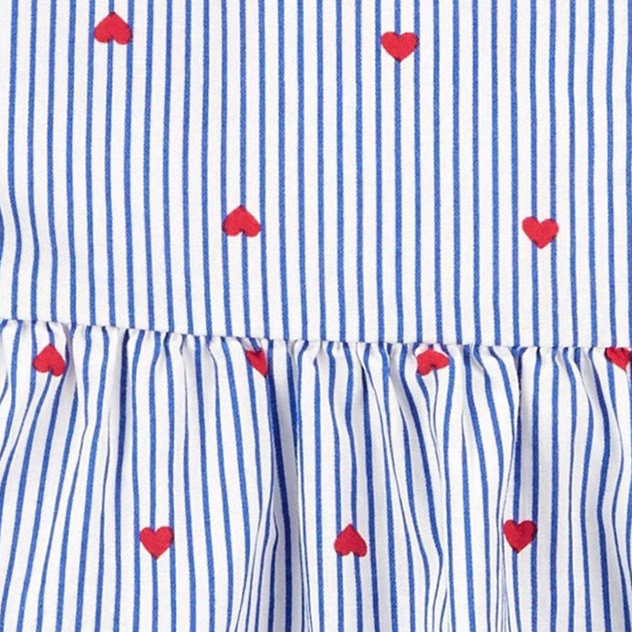 - CRT Heart Print Stripe Blue Cotton Frock 7459