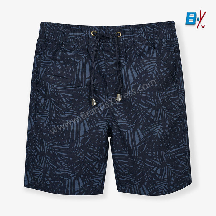 - CRT Leaves Print Blue Cotton Shorts 9134