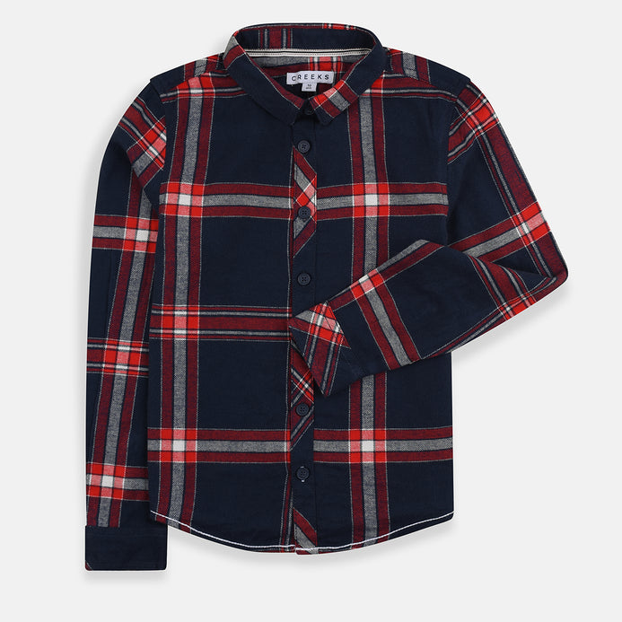 - CRK Thick Cotton Flannel Red Check On Blue Full Sleeves Casual Shirt 3920