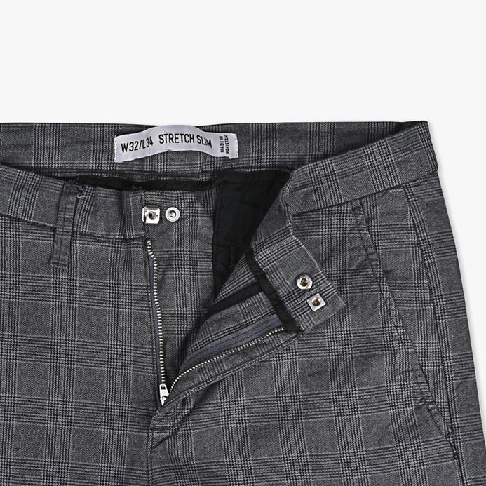 D&co Anthracite Grey Check Slim Stretch Chino 1772