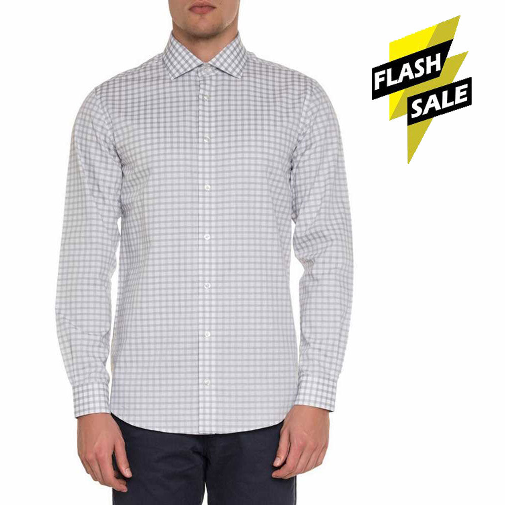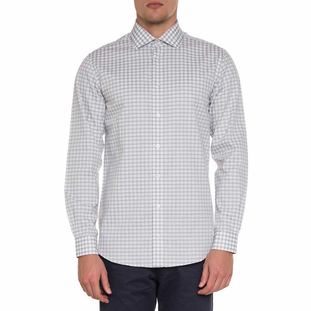 - DJ Slim Fit Grey Check Cotton Casual Shirt 8864